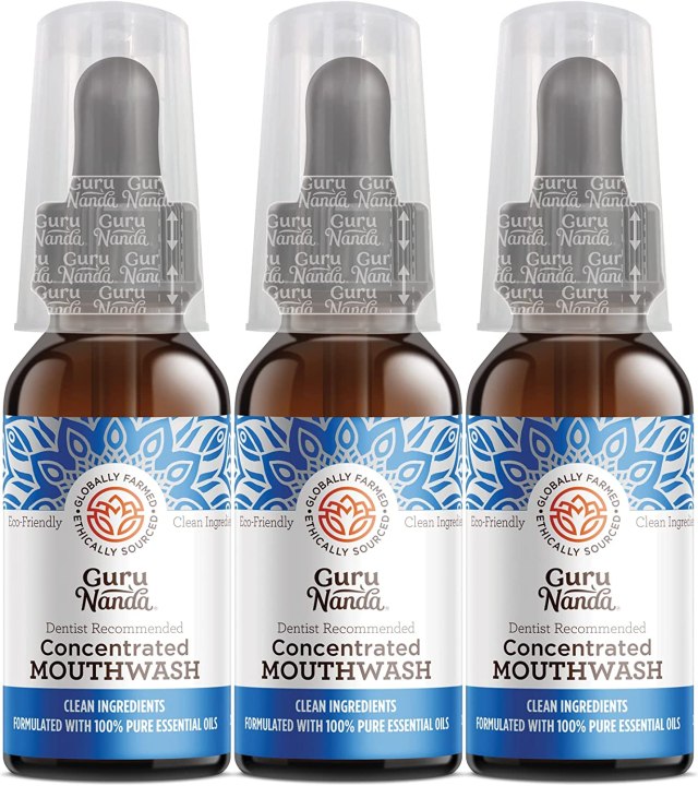 Guru Nada Whitening Mouthwash comes in a 2 Fl Oz bottle which makes up to 300 rinses! Small-sized bottles mean less use of packaging material and premixed water, while just 4 drops of this travel-friendly mouthwash mixed with water are enough for 1 usage. We're all for less packaging and natural ingredients!