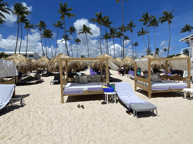 Just a quick five-minute golf cart ride or 10-minute walk will get you to the gorgeous Bávaro Beach. Here you’ll find lounge chairs reserved for hotel guests, an open-air restaurant, a food cart, and bar. You’ll definitely want to spend the afternoon enjoying the bright blue waters of the Caribbean. Of note: the resort does a great job of dealing with the seaweed with nets keeping it from coming ashore.