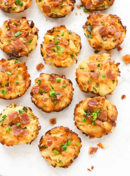 Homemade tater tots? Yes, please! These muffin tin tots are filled with cheese, chives, and bacon, and taste just like mini-loaded baked potatoes. ‘Nuff said, right? Get the recipe over at Well Plated.