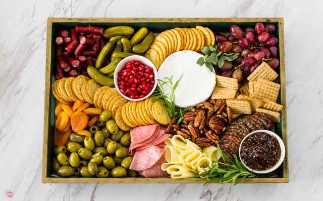 A cheese board is an obvious snack table centerpiece—and crackers are always a big hit with kids! Layer up a tray with the help of Take Two Tapas where you'll find a tutorial to answer all your questions. You can create an appetizing feast of cooked and cured meats, fresh and dried fruit, sliced veggies, and dips that kids and adults can both enjoy.