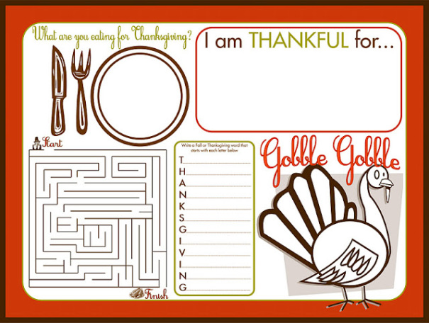 Turn over a new leaf this year and print out these perfect placemats for half-pints to use. Your little pumpkins will have a fun time matching the shapes. Hop over to Saving Dollars & Sense for this free Thanksgiving printable.