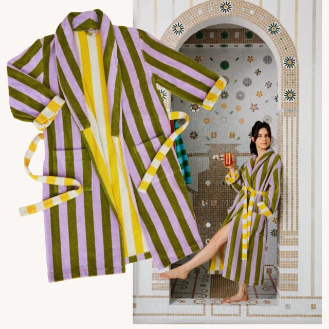 Dusen Dusen Stripe Terry Bathrobe in Sea Stripe ($138.00)—Buy Here!