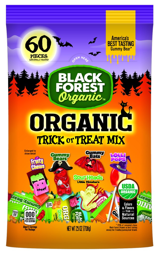 Made with real fruit juice and simple ingredients, trick-or-treaters will go wild for this tasty mix from Black Forest Organic. It’s got a nice variety of lollipops, gummies and fruit chews, and they’re all gluten-free and nut-free.