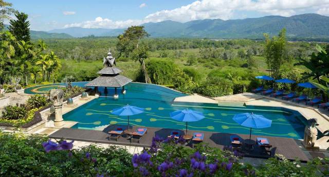 After you’ve walked among elephants at this resort, cool off in a jungle-side pool. Take in mountain views of Laos and Myanmar from its infinity edge, seek shade (and bubble jets) under its traditional pavilion, or simply swim amongst the tropical beauty of it all.