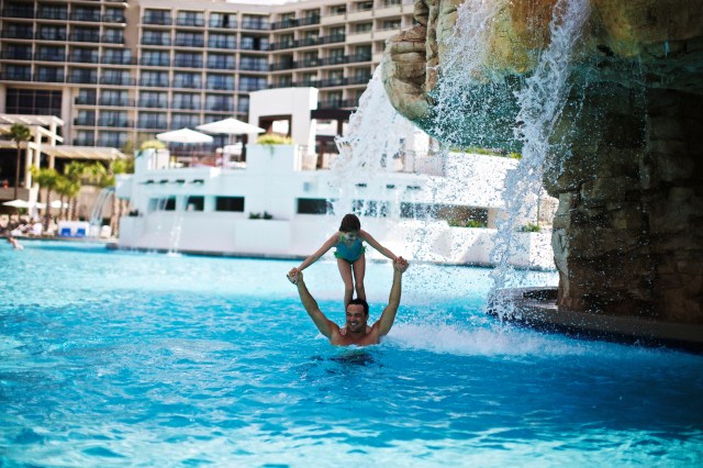 There’s nothing that sends your vacation to the next level like an epic hotel pool. With features like water slides, underwater caves, massive lazy rivers and even actual fish, your little guppies will never forget this day at the pool—guaranteed! Scroll through and plan your next family poolside day.