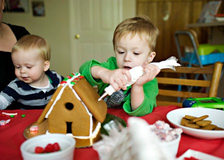 Home Christmas How to Make a Gingerbread House…From Scratch By writerredtriOctober 12, 2013 Search more like this gingerbread-househow-toice-creamready-to-goicepipcut-outsidemakebagmeringuebakewaterfun Read next Christmas 18 Festive Holiday Gifts for $25 & Under Christmas Celebrate the Season with Disney’s New Winter Coffee Blends Christmas Your Kids Will Be the Cutest Cotton-Headed Ninny Muggins in These “Elf” PJs Christmas 15 Gifts Every Nature Lover Will Adore Christmas This Device Will Help Your Child Track the Days Until Christmas Crafting and cooking may be two of the messiest things you can do with your kids, but when it comes to making a gingerbread house it’s totally worth it. Bree from Baked Bree (and mom of three) shares with us her tips and tricks to simplify the gingerbread house building and decorating experience. I really like making gingerbread houses with my children, but I feel that I must tell you a few things first to prepare you. 1. It will make a giant mess, over the course of a few days. 2. Your children will eat more candy in one sitting than they probably will eat in a month. 3. It will be so much fun that it will be totally worth having dried royal icing all over your house and hyper children. The first thing that I am going to recommend if this is your first gingerbread house is to start small. I have made many houses before, but this year we invited a friend over to make a house with us and I wanted it to be really fun and not stressful. I found this cute little elf cottage pattern at Simply Recipes (there are some good tips in this article as well). It is the perfect size for children and beginners. There are tons of patterns out there on the ol’ Interweb so take a peek around and find something that you like. I really like the train from Family Fun and have made it a few times. It is also good for beginners. When you make your dough, it needs to chill for at least 4 hours, better yet, overnight. Print out your pattern. I use card stock so that the pieces are sturdier. Roll out the dough fairly thick and lay the pattern pieces on top. I like to cut out my pieces using a pizza cutter. Put them on a parchment lined cookie sheet and bake them. Leave them on the cookie sheet until they are completely cool. I made 4 houses, so I did this 4 times. Make sure that you have all of your pieces cut out. Double check. Nothing is worse than trying to assemble a house and realizing that you forgot to cut out one side of the house. I should mention that I used 2 batches of gingerbread for these 4 houses. I had just enough. I would make 3 batches if I were doing this again. I would have liked to have made people also. In a perfect and completely organized world, you would let these sit overnight. You want them to be really solid for building. Now you need some glue. Otherwise known as royal icing. Use whatever recipe you like, but I like this one: 4 cups sifted powdered sugar 2 Tablespoons meringue powder 5-7 Tablespoons water Sift the sugar and meringue powder into the bowl of an electric mixer. Add 5 Tablespoons of water. Use the paddle and mix on medium for about 7 to 10 minutes. You want this to be fairly thick. It is going to be what holds the house together. If you need to, add a bit more water. Drops at a time. I know that sounds ridiculous, but it is amazing how royal icing can go from so close to runny in a matter of seconds. Go slowly. Put the icing in a piping bag fitted with a round tip. I used an Ateco #10, it was the perfect size for assembling the house. Royal icing will last overnight as long as it is in an airtight container. However, it will not last if it is in a piping bag overnight. The water will start to separate and it will run. So at the end of the day, pipe whatever is left in the piping bag into the container and start with a fresh piping bag the next day. Get yourself something to make the house on. I like these 10-inch cake rounds that I got at a bakery supply store. Michaels has them too. I have also used wood. They need to be sturdy as the house can get pretty heavy. I like to start with a right angle. Usually the back piece and one of the sides. I pipe the bottom and put the piece down on it. Then I pipe the seams. Let it rest for a few minutes and start to harden before you move on. I use something (like this little milk jug) to prop them while the dry. Do the other side and let that rest. Add the front. I was making 4 houses, so by the time I got back to the first one, it was set enough to move on. This part is really important as it will make life so much easier when you are decorating. It will not fall apart and the kids will not be freaking out that the roof has caved in. Let the base dry for a bit before you add the roof. I piped a little scallop on the bottom because it looks cute, but it also adds a bit of structure and stability to the house. When you are ready to add the roof, pipe icing around the edges of one side. Place your cookie piece on the icing and keep for hand on it for a minute or two. You really want it to stick. The roof is always the hardest part for me. When the one side is hard, add the other side. Your house should be put together. I do this the day before I am going to decorate it. I know that we are now on Day 3 of gingerbread house making, but I did warn you that it would take a few days. If you do not have the time to let it sit, it is not the end of the world. Just be more careful about handling it. Now for the most fun part, decorating. Do yourself a favor and buy a disposable tablecloth to go over your work area. Have everything set out and ready to go. The piping bags had an Ateco #3 tip on them. We had M&Ms, licorice, Dots, Starlite Mints, gummy bears, sprinkles, coconut, ice cream cones, all kinds of fun stuff. I like to formulate a plan before I start, but the kids just go town. Any tips or tricks about how to make an awesome gingerbread house you’d like to share with our readers? Be sure to