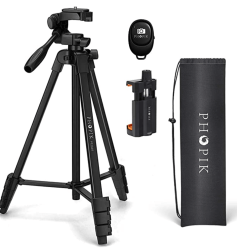$26This affordable tripod has no bells and whistles, but it'll hold your phone at the perfect angle to take a photo for your holiday card WITH YOU IN IT! Bonus - it comes with a wireless remote trigger!