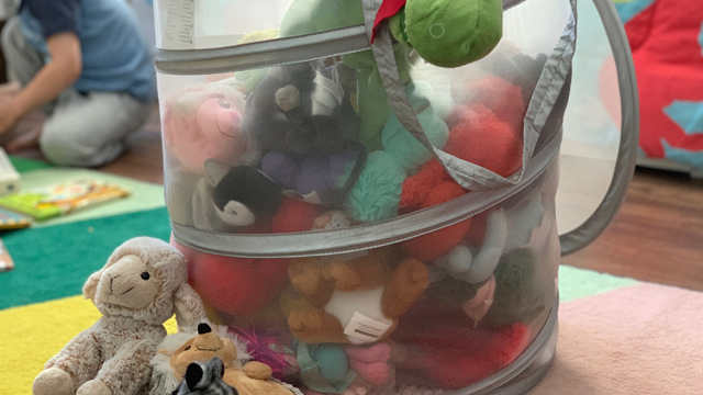 There are several amazing hacks for an IKEA kids’ room here, but our favorites include using the OSTBIT plate holder for books and the BAGGMUCK shoe tray as a table-top toy tray.