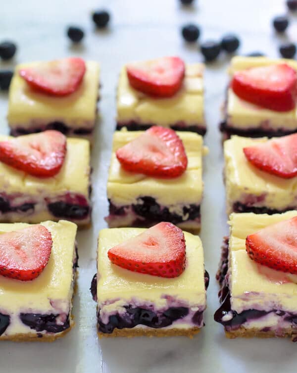 Home Recipes 34 Red, White & Blue Recipes for the Fourth of July By Abigail MatsumotoJuly 2, 2021 Search more like this how toindependence daychicken coopdairy freefrozen yogurtgreek yogurtkettle cornveganwhipped creambakingchocolate coveredcoconut oildessert ideasgluten free Read next Recipes 11 Latke Recipes That You Can Make All Year Long Recipes 29 Kid-Friendly Baking Recipes Perfect for the Holidays Recipes 23 Genius Recipes for Thanksgiving Leftovers Recipes ‘Tis the Season for Halloween Fun Facts & Baking! Recipes Pick of the Patch: Roasted Pumpkin Seeds This year, even if you don’t do a huge party with friends, it’s still easy to make your Fourth of July extra special by whipping up a few festive appetizers, snacks and some creative dessert ideas, too. From red, white and blue dips to wow-worthy cookies and cakes, we’ve gathered up a bunch of dishes to make your Independence Day next-level amazing. Keep reading to let the fun begin. Don’t have time to read ’em all? Pin our red, white and blue recipes now so you can read later! photo: Katie Kick via Good Life Eats Red, White & Blueberry Almond Frozen Yogurt Bites Perfect for a hot Fourth of July day, these adorable mini frozen yogurt bites have plenty of healthy fruit too. With no added sugar (just vanilla greek yogurt), and a crunchy nut bottom, make a batch ahead of time and pull out right before the fireworks go off. Get the recipe from Katie Kick over at Good Life Eats. photo: 3 Scoops of Sugar Red, White, and Blue Skillet S’mores Ready for a s’mores recipe that will knock your patriotic socks off? This simple idea from 3 Scoops of Sugar, which is full of strawberries, bananas, and blueberries, will give a new twist to your s’more expectations! It’s extra festive and easy to pull off with your handy dandy skillet. Get the how-to here. photo: Love from the Oven Patriotic Push Pop Cake For an adorable dessert that won’t require you to turn on the oven, you’ve got to make these push pop cakes from Love from the Oven. With some store-bought pound cake and colorful frosting, they’ll come together in no time. Click here to get all the details. photo: The Kitchen Prep American Flag Cheese Plate Get inspired by The Kitchen Prep to make a festive cheese plate for your 4th of July bash. It’s easy to customize it to fit your family’s tastes and makes a delicious appetizer before your barbecued feast. Get the scoop on how it’s made by clicking here. photo: Beyond the Chicken Coop Patriotic White Chocolate Pretzels Get the kiddos involved in making these fun chocolate-covered pretzels from Beyond the Chicken Coop. They’ll love decorating each one with a splash of sprinkles. Click here to get the recipe. photo: The Creative Bite Flag Parmesan Garlic Chip Dip We’re obsessed with this dip idea from The Creative Bite—cutest appetizer ever! Pair blue corn chips with a garlic parmesan dip and cherry tomatoes, and you’ve got a flag-inspired appetizer that your whole crew will love. To get the recipe, click here. photo: Tuxedo Cats and Coffee Patriotic Cake Cookies These cookies from Tuxedo Cats and Coffee are everything we want from a 4th of July dessert: easy, delicious, and pretty. They’re made using cake mix, so you don’t have to be a baking expert to pull off this one. Click here to grab the recipe. photo: Jacks & Kate 4th of July Cake We’re gaga for this uber-creative cake. It’s colorful, fruitful, and doesn’t require any fancy cake pans—really! Now that’s what we call a show-stopping July 4th dessert. Find out how to carve your own country over at Jacks & Kate. photo: Get Inspired Everyday No-Bake Triple Berry Crisp Whip up a fabulous Independence Day dessert without ever turning on your oven! It's totally possible with this simple no-bake crisp that uses the season's freshest berries. For the full recipe, visit Get Inspired Everyday. photo: Erin at Well Plated Red White and Blueberry Cheesecake Bars These creamy, patriotic cheesecake bars are the perfect way to set the July 4th mood. They feature Greek yogurt, fun fruit flavors and even a graham cracker crust! Get the whole delish scoop at Well Plated. photo: Real & Quirky July 4th Toast Ready for a brilliant 4th of July breakfast? We’re loving how this idea is super easy to pull off but totally tasty and festive. Bonus points: you probably have all the ingredients ready to go. You can learn more (and even get a recipe for honey wheat bread) at Real & Quirky. photo: Abbey’s Kitchen Vegan Watermelon Cake Looking for a 4th of July dessert that’s vegan, low-calorie, gluten-free and totally wow-worthy? You’re in luck, because this watermelon cake fits the red, white and blue bill! Learn how to make your own (it's easy!) at Abbey’s Kitchen. photo: Modern Parents Messy Kids Patriotic Pancake Stacks Serve up the breakfast of July 4th champions with this perfect pancake idea. Think: kid-sized pancake stacks, fresh berries and a healthy dollop of whip cream. Yum! Get the full scoop at Modern Parents Messy Kids. photo: Homemade Food Junkie Vanilla Cream Fruit Tart We love how this fruit tart is equal parts sweet and creamy. (Psst! The crust uses coconut oil, which adds an extra dose of delicious flavor.) Visit Homemade Food Junkie for the full recipe details. photo: The Merry Thought Patriotic Mocktail We're awarding major points to this drink for having a patriotic presentation AND being completely kid-friendly. Now that's something we can all toast to! Get the whole how-to at The Merry Thought. photo: Spicy Southern Kitchen Brownie Flag This sweet recipe couldn't be easier (hint: the prep time is only 15 minutes!). You can even make the brownies from a store-bought mix. Get the full lowdown on this jaw-dropping idea at Spicy Southern Kitchen. photo: Simple Roots Wellness Savory Bacon and Balsamic Watermelon Salad This recipe isn't just a tongue-twister...it's also ultra-delicious and packs a sweet and tangy punch. Plus, it'll add a li