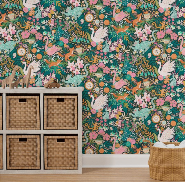 It doesn't get much more whimsical than this peel-and-stick wallpaper from Spoonflower. It also doesn't get much easier than peel-and-stick either, does it?