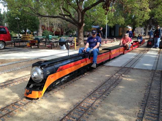 The train ride at this Griffith Park spot is aboard a 7½" gauge model train, which makes it about an eighth the size of a standard train. You sit on top of it, straddling the train car, as opposed to inside it. You'll cross bridges, pass through tunnels and alongside miniature towns. Know before you go: Passengers must be at least 34-inches tall to enjoy the ride.