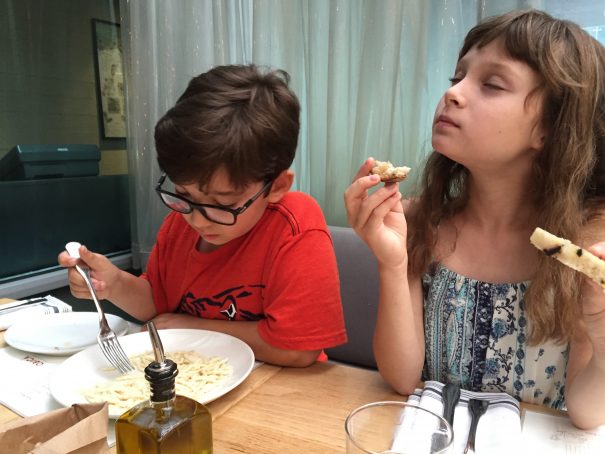 So… a pizza chain makes the list? Yup! Here’s why: not only do kids adore the $5 personal pies (hello, fabulous price point!), but parents can indulge in freshly made pizza, pasta or seasonal veggies paired with beer, wine or craft cocktails. The food is prepared quickly, but without sacrificing farm-to-table freshness. Kids can mold colored clay while they wait. Long, large tables are perfect for families. While the kids’ menu had them at mini-Pizza, the mini Mac & Cheese and opposite-of-mini Chocolate Chip Cookies are also enticing. (There are gluten free crusts and vegan cheeses to pick from here, too, if that’s a consideration.)