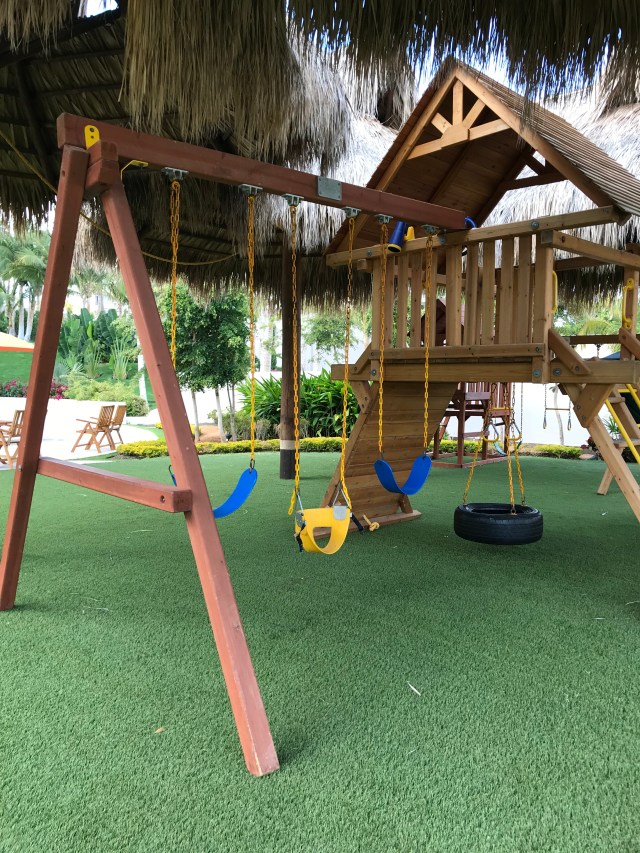 Outside the kid's club, splash pad and wading pool that is designed for the toddler crowd, there are three jungle gym sets with the same ocean views the rest of the resort enjoys. How awesome is that as parents, we get to be a part of the action without being relegated off to the side of the resort, never to be seen again?