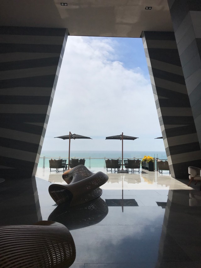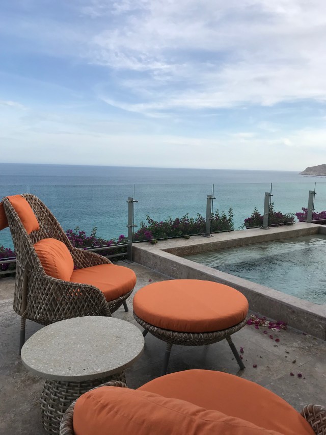 The welcoming site of the open-air lobby at Grand Velas Los Cabo is, without a doubt, a spectacular one. As you walk through the breezy atrium, you are greeted by the super friendly hotel staff, invited to sit on the balcony to take in the resort and the stunning ocean view. And if that's not enough, you are handed a cold, fruit-y flavored drink in a cold Moscow Mule mug and are given a mini head and shoulder massage compliments of the spa. Talk about starting off on the right foot!