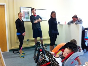 Home Red Tricycle Gets Fit! By Tina LyOctober 29, 2012 Search more like this trick-or-treatassessmentfitnessstrengthmorning-workoutliftred-tricycleshouldermedicineheightwellnessprogressminimumwhip Read next Hanukkah-Themed Gifts for Your Holiday Wish Lists 59 Easy Science Experiments to Do at Home Every Holiday Movie on Amazon, AppleTV+, Netflix & Disney+ This Year 16 Ride-On Toys That Will Top Your Elf’s Holiday List The Best 2021 Black Friday & Cyber Monday Deals for Families The team here at Red Tricycle is putting our money where our mouth is. We’re getting in on Blue Shield of California’s We Shield Moms program in an effort to inspire our readers that we too, are up for the challenge on achieving healthy, balanced and active lives. For the next 8 weeks, Keely Grand of Be Grand Fitness (and part of our “Moms Who Make a Difference” program) will be whipping our staff into shape, despite the holiday temptations that lurk behind every trick or treat bag and supermarket aisle. Week 1: The Assessment With varying degrees of fitness within our group, we started off with a written assessment of our current physical fitness, followed by Keely taking down our measurements (height, weight, inches, gulp) so that we can keep track of our progress. The Red Tricycle Team (Rebecca, Scott, Rebecca and Tina) with Keely’s son 11-month old Miles, gets ready to get moving for our morning workout. We then hit the studio to get started on a basic physical assessment of strength, coordination and agility. Moves included several minutes of cardio – jumping jacks and high knees; toning – plank positions, push-ups and bridges; and coordination – squat kicks and shoulder presses with resistance bands. While the team was successful in strength by holding plank and lifting medicine balls, a few missteps during squat kicks (ummm… two people kicked each other!) told us we could work on our coordination. Week 1 Wellness Challenge: Our assignment – to walk, hike, jog or run twice this week for a minimum of 30 minutes.