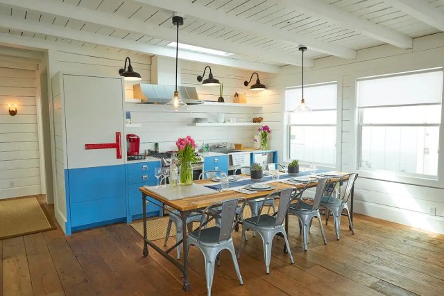 This tri-level home is just four blocks from Venice’s trendy Abbot Kinney Street (shops and restaurants galore!) and a 10-minute walk to the Venice Boardwalk. With plenty of room to spread out, this home has three bedrooms and 2 1/2 bathrooms, with a spacious living room that’s got a stand-up arcade game and foosball table. But the real highlight of this spot (besides the killer urban location) is the rooftop, which has panoramic views of Venice, as well as a barbecue, fire pit, dining, and lounge area.