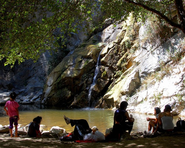 Switzer Falls/Bear Canyon hike, one of Angeles National Forest’s shining jewels, is blanketed with nature-made swimming spots making it a wonderful outing for your small splash seekers. There sure are plenty of fresh water pools and streams that will delight the masses but the masses tend to show up especially on weekends at the entrance where families settle in for picnics and wading in the Arroyo Seco Creek. If you crave less commotion, head about a mile downstream where waterfalls and wildflowers abound. At the fork in the road, veer off to Bear Canyon Trail which loops back to the stream and takes you to a decent size cascading waterfall and a swimming hole surrounded by rocks. Bring water and sunscreen—those non-shaded areas get hot.