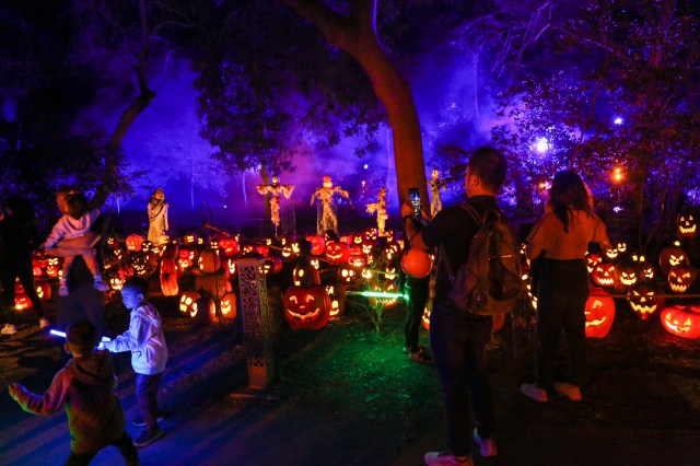 One of our favorite haunts during Halloween season is Descanso Gardens and their annual family-friendly Carved event. You can’t buy a pumpkin here, but you can soak up tons of inspiration strolling by the incredible pumpkin carvings lining the Camellia Forest. As visitors wander the route and and pass through the picturesque Rose Garden, they will be enchanted by glowing jack-o’-lanterns, fallen tree sculptures, and whimsical displays. And don’t miss the Día de los Muertos altar, the popular Pumpkin House, giant carved pumpkins, and a glow-in-the-dark installation called Rhizome by Tom & Lien Dekyvere.
