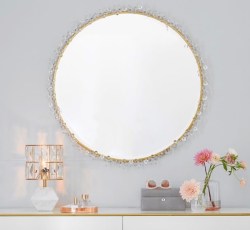 Monique Lhuillier Crystal Flower Framed Round Mirror