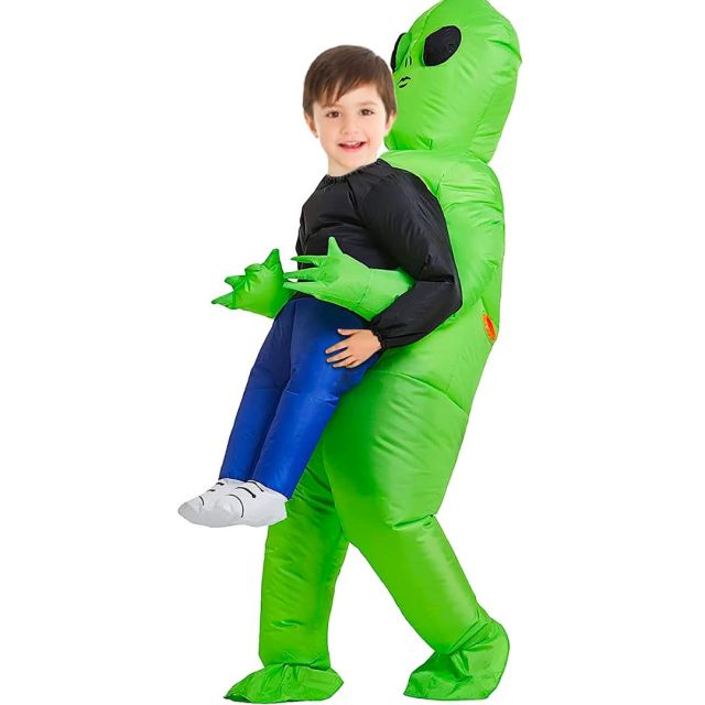 The inflatable spider jockey is…a lot. Picture your kid wobbling down the street like a Minecraft mob straight out of a fever dream—spider legs flailing, skeleton on top. Hilarious, slightly terrifying, and guaranteed to stop traffic.