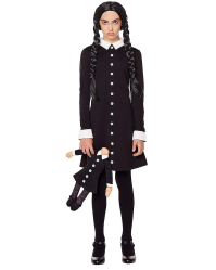 The Nevermore uniform nails Wednesday’s signature deadpan energy: zero sparkle, maximum sarcasm, and "I don't do cheerful". Trick-or-treating, but make it moody.