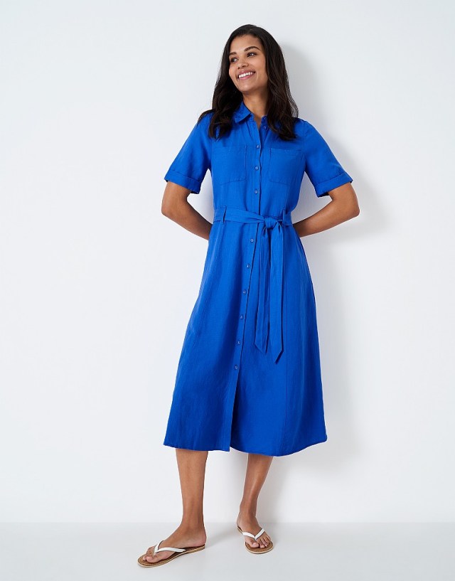 This cornflower blue is just everything good about spring! The v-neck and waist-defining belt make this a foolproof pick. *Please note that Crew Clothing does not ship to the U.S. at this time. Bethany Linen Shirt Dress (£89.00)—Buy Now!