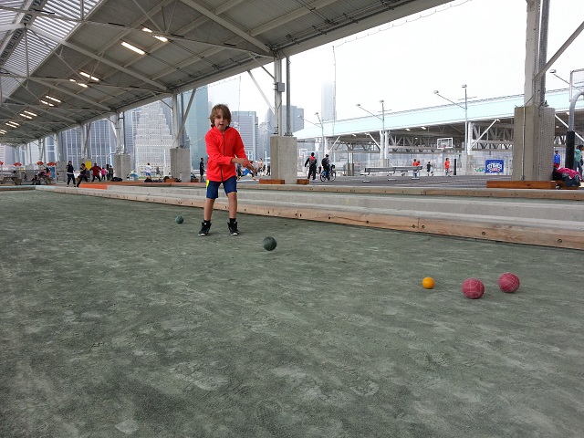Home Just Opened Tour Brooklyn Bridge Park’s New Pier 2 Play Zone & Pier 4 Beach By Alice PerryMay 27, 2014 Search more like this bocce-ballstreet-parkingfitnessbridgeaerobicgreen-grassroller-rinkbeachheartpineappleracetransportationgrassstun Read next Just Opened Gift Ideas for New Moms Just Opened Accio Dinner with Le Creuset’s New Harry Potter Collection Just Opened These Quirky Airbnbs Might Sneak Onto Your Travel Bucket List Just Opened Out of Diapers? Uber Eats Is Here to Save the Day Just Opened 14 of Trader Joe’s Best Appetizers for the Holidays The new Pier 2 at Brooklyn Bridge Park will get your heart racing in more ways than one. While the stunning views of the Manhattan skyline will leave you breathless, the pier’s fitness-focused facilities will get you and the kids moving and your hearts pumping. Within the pier’s five acres, you’ll find five full basketball courts, 16 swings, six handball courts, an aerobic fitness playground, a massive artificial grass field, Bocce ball and shuffleboard courts, and a soon-to-open roller rink. Here are some of Pier 2’s highlights, plus a look at the Pier 4 beach. Field Day Sometimes the word “fake” gets such a bad rap -- that is, until you see and feel the artificial turf on Pier 2’s half-acre playing field. The rich green “grass” looks like a picture-perfect manicured lawn and provides a soft landing for when your little athletes tumble, stumble and tackle. Insider Tip: Street parking is scarce, so take public transportation. Bathrooms are clean and include changing tables, but expect long lines. Coin lockers are also available. Go: Pier 2 Brooklyn Bridge Park Furman St. between Clark St. & Pineapple St. Hours: Daily, 6 a.m.-11 p.m. with lights on for evening play. All Photos by Alice Perry, except beach photo by Christine Knight –Alice Perry