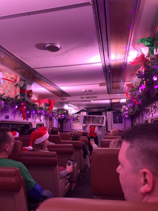 This train ride lasts about an hour and 20 minutes and gives families a chance to interact with Santa and his elves. Each child will receive a small gift from Santa's toy bag while elves and other characters lead passengers in carols and singalongs. First class travelers will also be served hot cocoa and get more comfortable seating. Afternoon and evening rides are available, with evening rides being lit up with Christmas lights. Keep in mind that there are no restrooms on the trains.