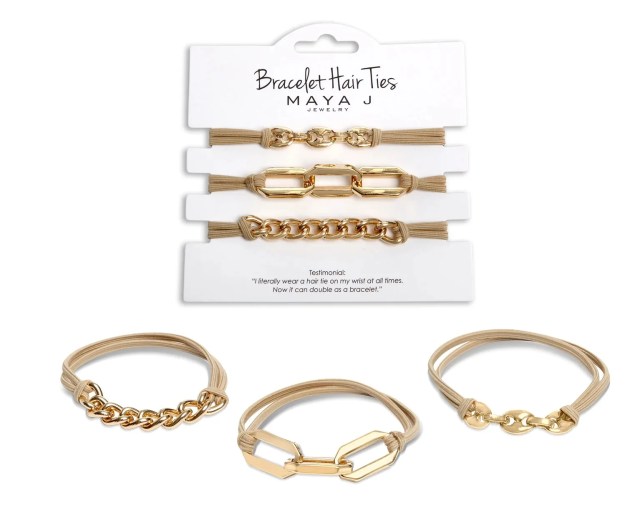 It's a bracelet. It's a hair tie. Either way, it's cute as can be! We're already rocking at least one ponytail holder on our wrist at any given time, so now we're making it fashion with these beauties. Available in both gold and silver tones.