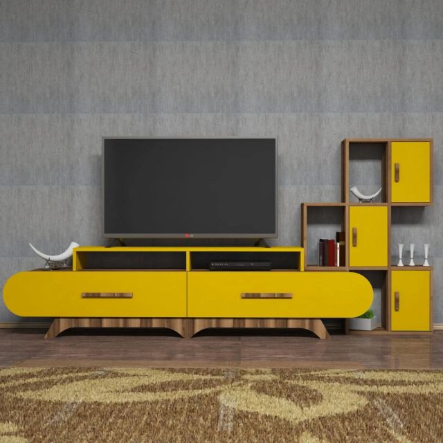 Adding a cool element to your living room is so easy with this entertainment center from East Urban Home! It's available in 3 colors and has so. much. storage. Plus, the shelves can be moved around, so you can set it up exactly how you want it.