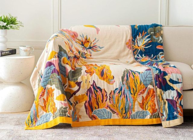 This Anthro-esque throw blanket comes in several (machine washable) prints and multiple sizes.
