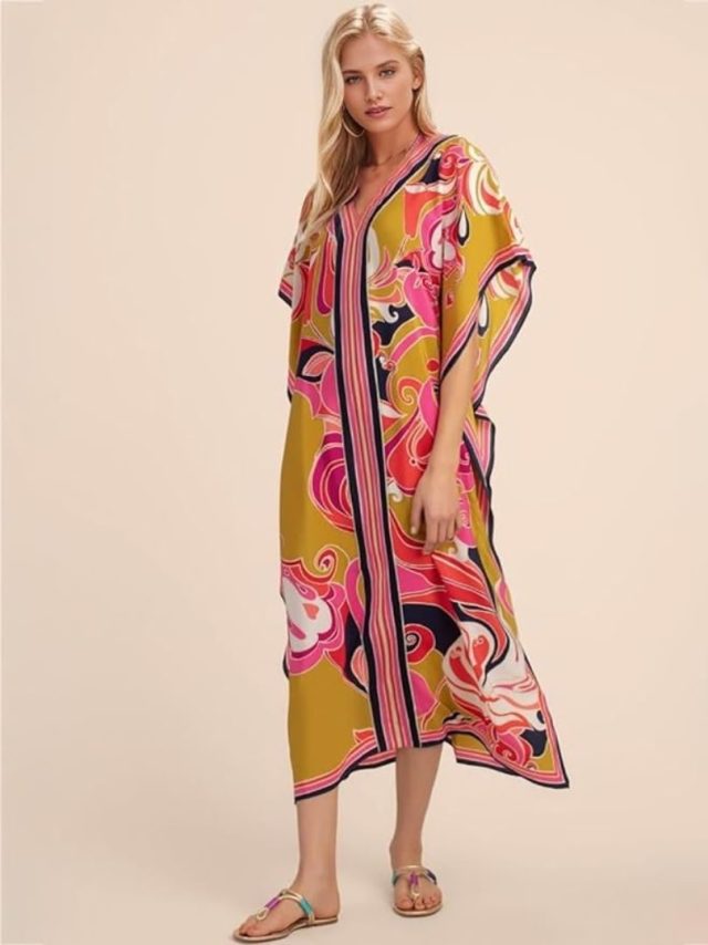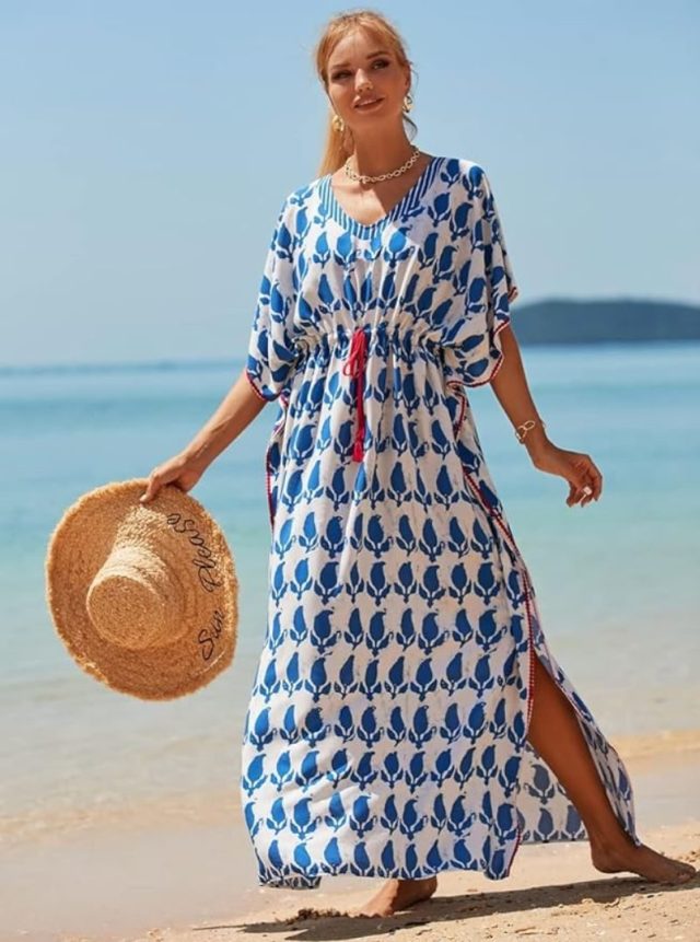You can't have Palm Royal without kaftans, and this one comes in a ton of different colors and print! It fits sizes M-XXL with a breezy silhouette that's awesome for swimsuit coverups, too.