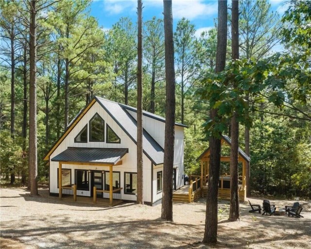 Located in cabin-famous Broken Bow, this luxury property sits on an acre of land and includes a gourmet kitchen, Jacuzzi, outdoor dining, fire pit, bistro lights, and more!