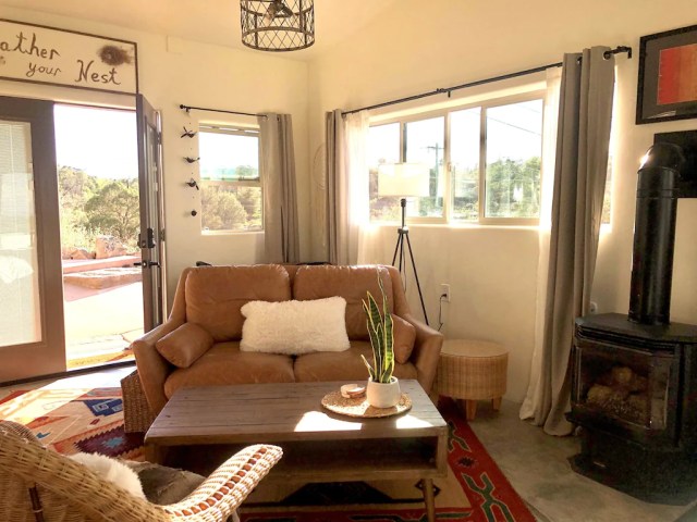 Feeling a boho vibe? This casita in Prescott, AZ is, too! It's a modern open-plan studio with a king-size bed, kitchenette, sliding barn doors, and the most incredible views. It's also dog-friendly!