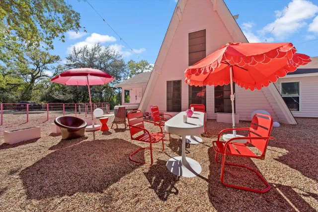 This one is a mid-century-meets-ski-chalet property that feels secluded while still being within miles of local attractions.