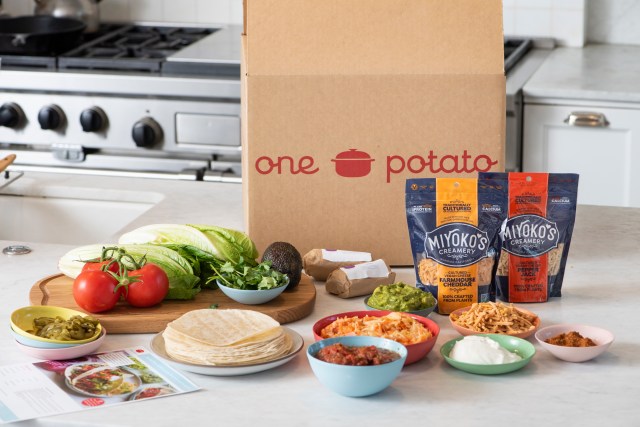 This meal delivery service has been turning out kid-friendly meal kits for years and they recently added vegan options to their menu. Subscribers are able to pick from vegan versions of Classic Burger and Fries; Tacos with Guacamole and Pico de Gallo; and Slaw & Pizza with Greek Salad. Offered every week, the vegan One Potato meals featuring Miyoko’s Creamery products are a great way to introduce Meatless Mondays to your family.