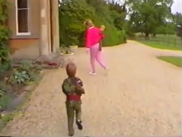 Princess Di, meanwhile, is the mom you’d want to chat with on the playground. She’s not a helicopter mom; she only comes to the “rescue” when William is clearly stuck and asks for help. She lets him climb all over the steel structure while holding Harry on her hip, jumping to catch him (though she probably would have failed if he hadn’t gotten a grip as he slipped) when he loses his footing, then cutting him an epic mom stare (paired with a grin) afterward.