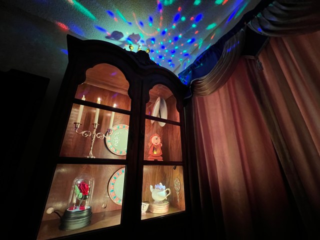 Before we get to that magical door inside Beauty’s room, let’s talk about the china cabinet. Push the button on its side, and the candelabra Lumiere, which you probably didn’t notice atop the cabinet, will (kind of) come to life—playing the music of “Be Our Guest” throughout the room. But that’s not all! We don’t want to give away all of the hutch’s secrets, but let’s just say all the items inside it are as enchanted as the beloved characters in the Beast’s castle. That, and this bedroom may have the only bonafide music & light show of any Airbnb ever. Your littles will want to press that button over and over again.