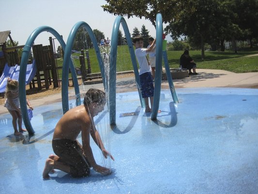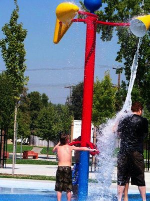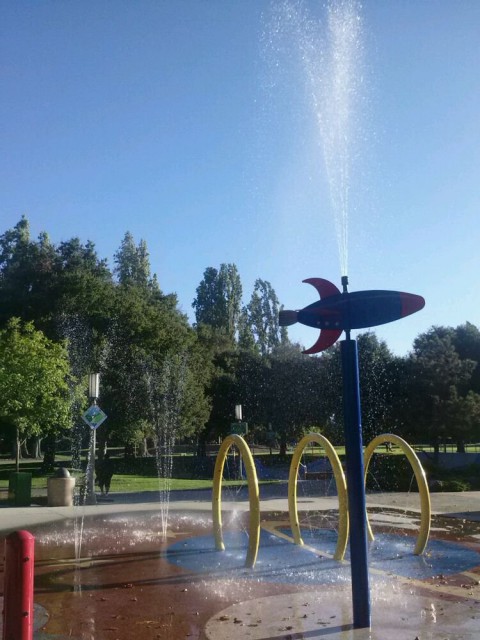 Four parks and a splash pad? This playground is like the Disneyland of playground water play. Your little buccaneers can use the spray cannons to get their friends soaking wet, all while romping around the softly padded ground. Due to current drought conditions and required water restrictions District Splash Pads will be operating:
