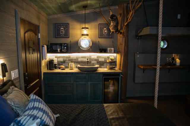 It all began when parents (and owners) Amanda and Brian Jensen built their four kids a treehouse, complete with bunk beds, a trap door, a swing, and a zipline. When the kids outgrew it, they joked about renting it out. But it wasn’t until a large property near their home went up for sale that they decided to really bring their dreams of a massive treehouse resort to life.