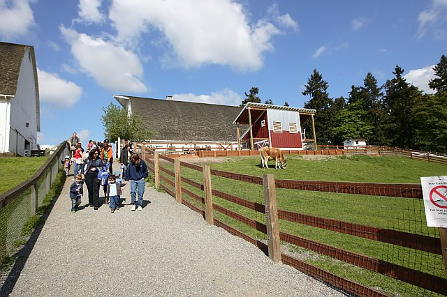 You won’t need to dress the kiddos in their old boots and clothes for a trip to this farm. Kelsey Creek Farm is owned by the City of Bellevue and operated by the Parks and Community Services Department which means the farm is well maintained 365 days a year. Most of the paths around the property are paved which means there’s no big mud puddles to tromp through…. unless you’re planning on going on a super rainy day. Dress the kiddos in their play clothes and be sure to bring along a light jacket for the spring and fall months. The wind can pick up when you’re on the hill by the barn.