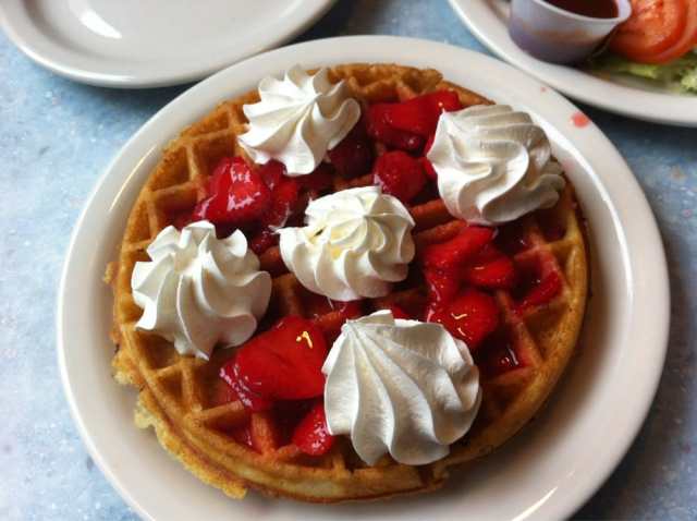 You'll grin like a possum after eating this country cookin'. First, the fresh waffles topped with strawberries and whipped cream or peanut butter and banana are sweet and delish. Secondly, try the Swedish crepes that are light and yummy. Also, there's a kid's menu with mouse ear pancakes topped with whipped cream, a half-order of French toast and many more choices.