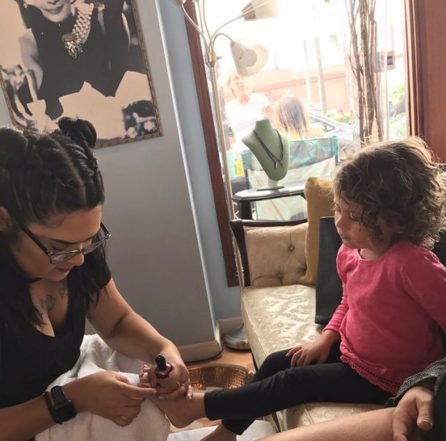You’ll love the scent of essential oils wafting through the air when you walk into this environmentally-conscious nail salon that uses polish with only all-natural ingredients. For you: try the Peruvian chocolate pedicure with sugar, cocoa butter and coconut oil. It will hydrate your skin and you’ll smell like the tropics.The kids can enjoy getting pampered with a warm hand soak, finished with a non-toxic, water-based nail polish.