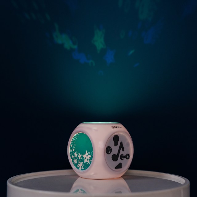 The Kübe nightlight boasts 10 lullabies, five soothing sounds (birds, heartbeat, stream, forest and ocean), and three projection themes on the wall or ceiling: soothing sea, starry night and peaceful forest. Best of all, it's voice-activated, so if baby wakes up crying, the music and/or projection (your choice) will start automatically to lull them back to sleep. It comes with a timer feature and auto shutoff after 30 minutes and works with batteries or USB.