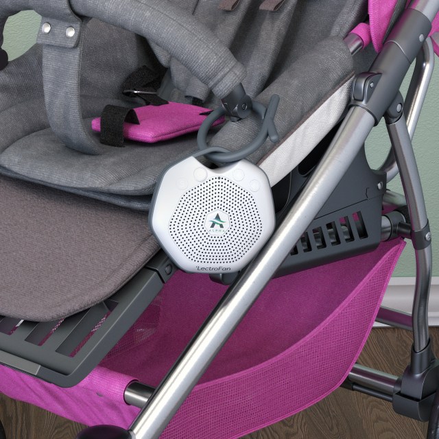 Throw this small sound machine, the LectroFan Alpha, in your diaper bag or attach it to a stroller or car seat and you're ready to go. Choose from seven sounds (including a heart beat, fan, pink noise, brown noise and ocean waves), and recharge it with the included USB cable. One charge lasts for up to 40 hours.