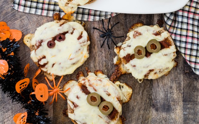 How cute is this pair? All you need to get your monsters started are olives and toothpicks. These would be super adorable as sliders as well! We are definitely adding this Halloween dinner idea to our October recipe rotation.