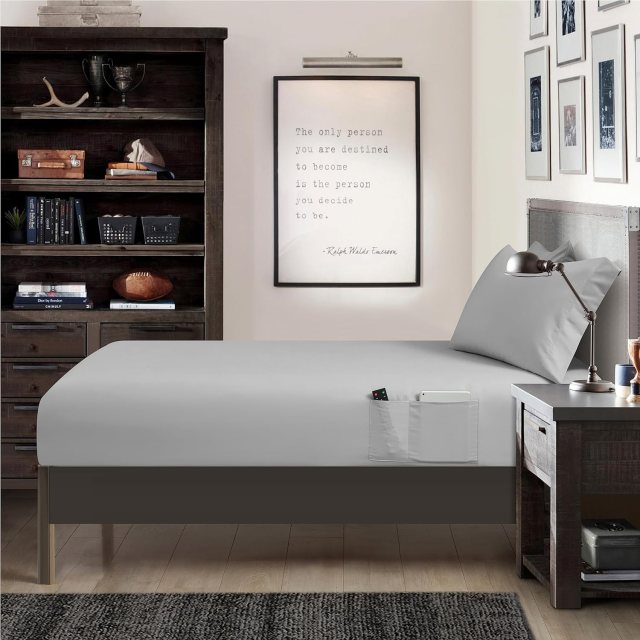 Help them keep their tech and accessories close with this 3-piece sheet set—2 fitted sheets with storage pocket and 1 pillow case. Available in 3 colors.
