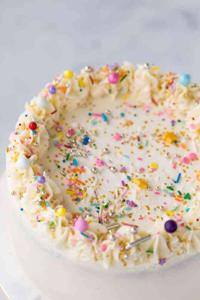 Decadent chocolate cake. Whipped vanilla buttercream. Need we say more? This classic cake from A Classic Twist is a guaranteed showstopper—don't forget the sprinkles! Get the recipe here.