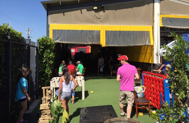 It’s pretty clear that Golden Road Brewing Company understands the perils of dining with kids in public. The hand-crafted Bavarian soft pretzel is a family favorite at the Atwater Village location (5410 W San Fernando Rd.). There are lawn games for little wiggle worms, you can catch a train going by every now and again (the brewery is housed inside a former Southern Pacific switching station), and there’s even a special patio just for dogs. And, here’s an insider tip: make use of the valet parking. It’s free and beats parking a few blocks away. Self-parking is scarce. Other locations can be found in Downtown Los Angeles (317 S Broadway) and Anaheim (2210 E Orangewood Ave.).