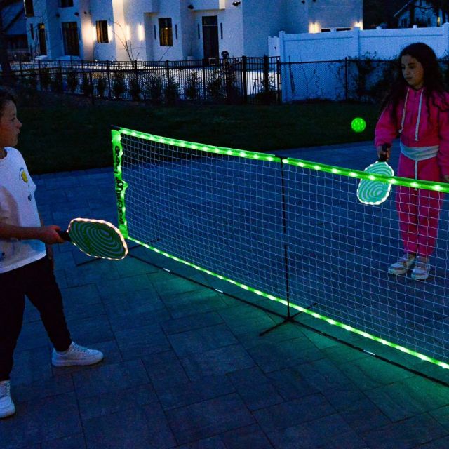 Take your pickleball game from day to night with this glowing set that includes paddles, balls, and a net.